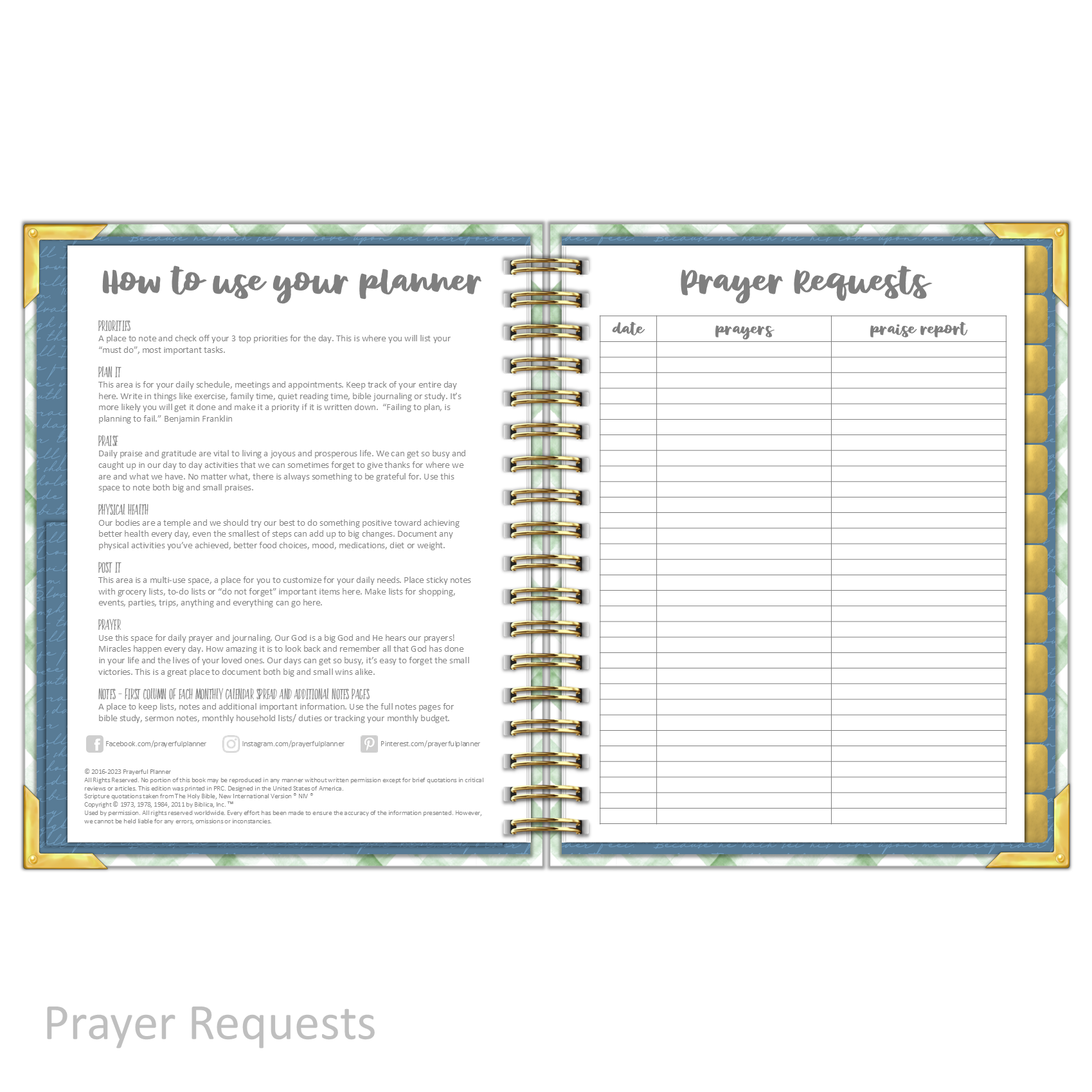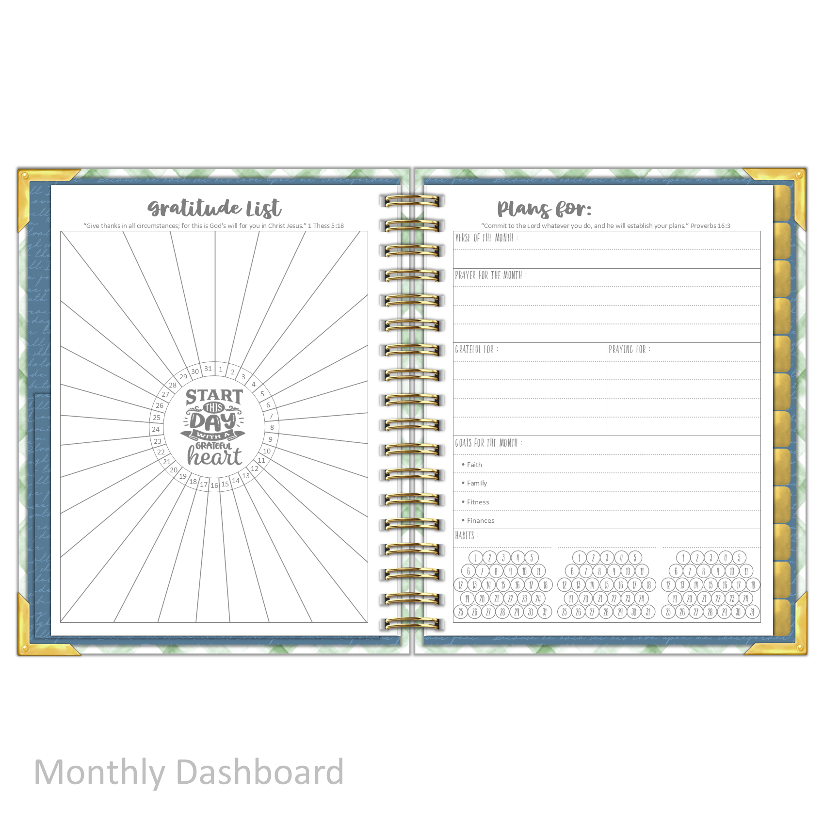 One of our newest editions to the "UNDATED" Prayerful Planner collection. Use this simple, yet powerful tool to document your daily journey and communion with Jesus. It’s not only a day planner for keeping you organized and focused, it’s a journal for documenting and tracing all of the ways that God is good. It’s a place to keep schedules and to-do lists as well as daily prayers, gratitude, praise and more!