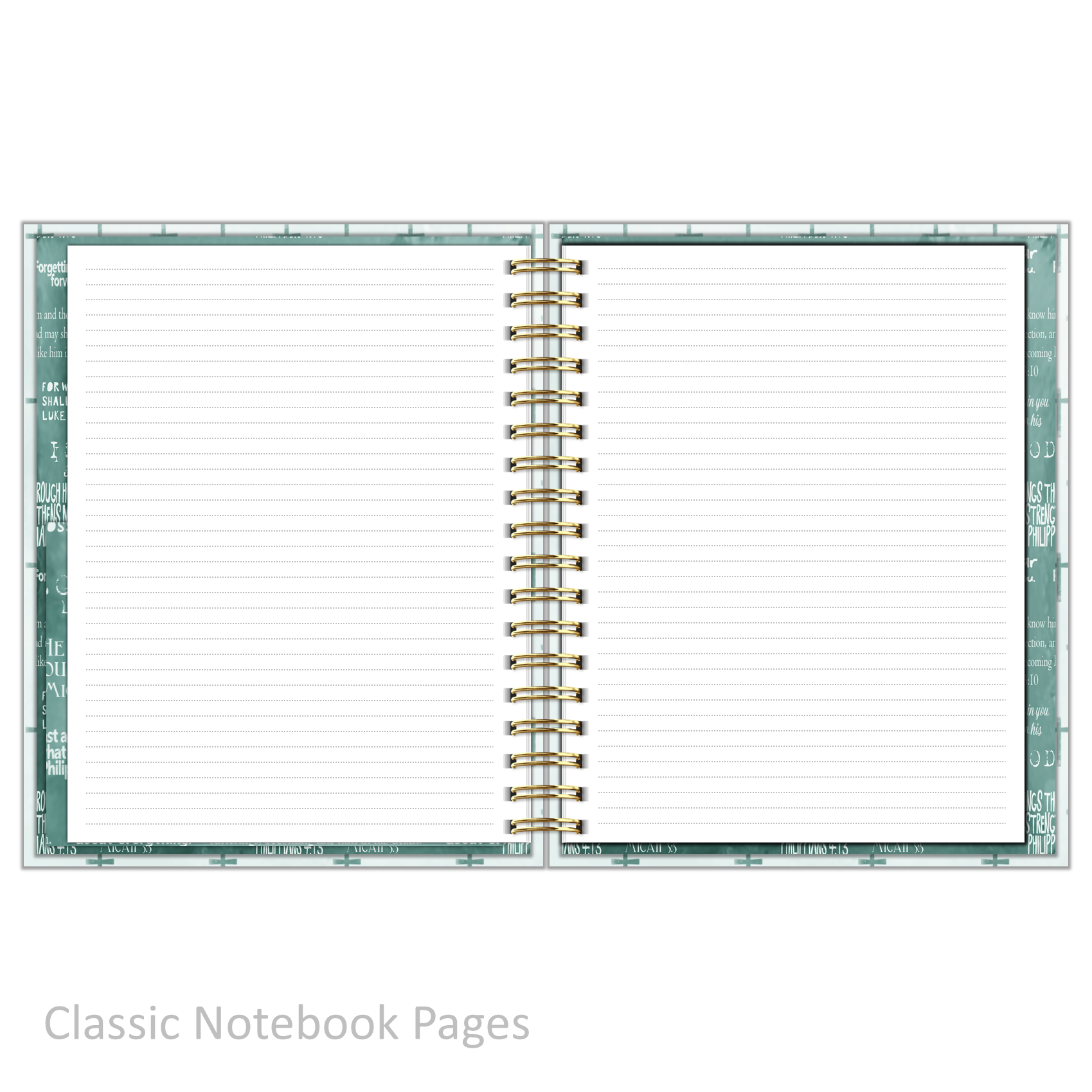 Our brand new spiral bound notebooks are now available! They are available in (2) sizes This pattern is called"Women of the Bible" and is in the classic size. It contains the same lined notes pages that are in our classic size Prayerful Planners.