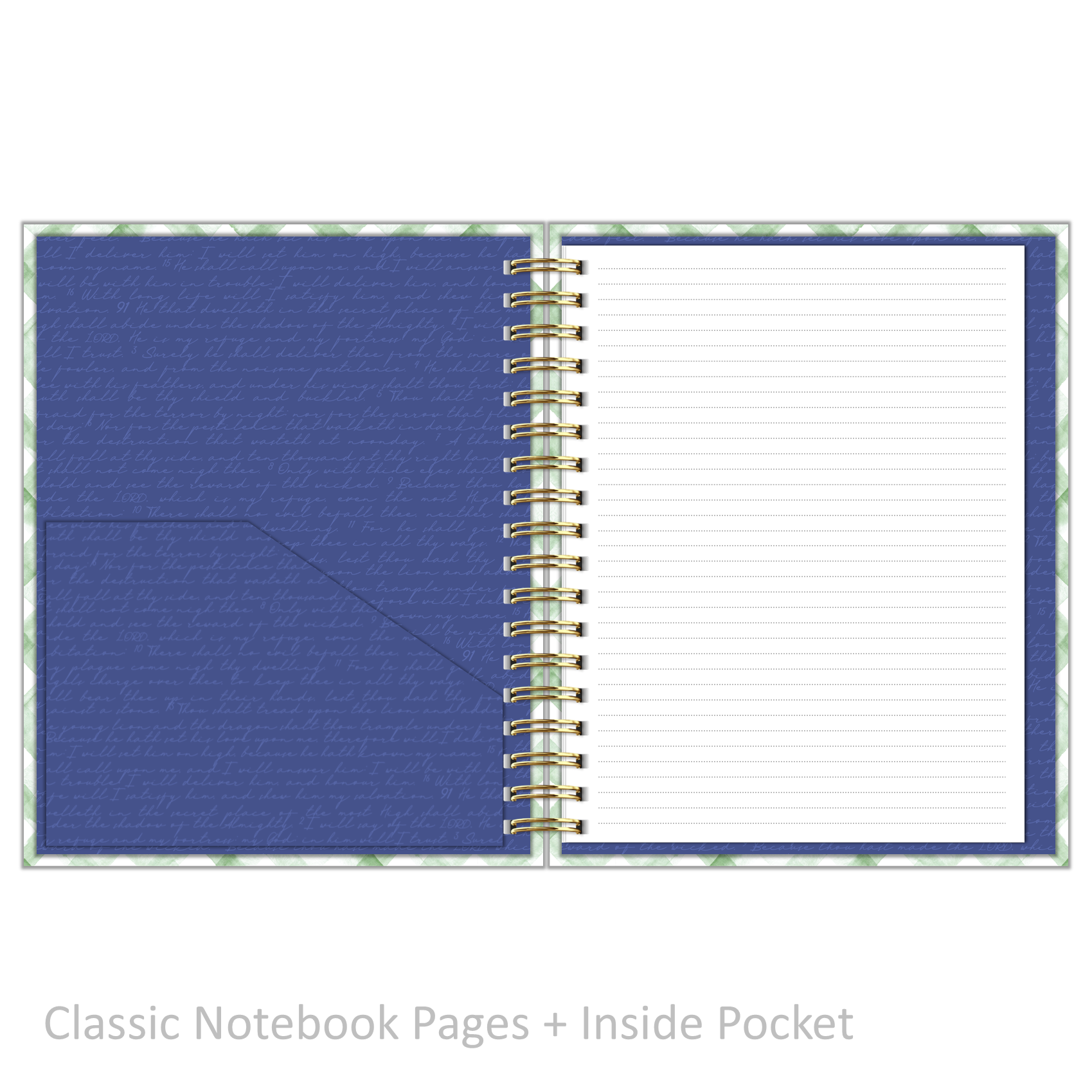 Our brand new spiral bound notebooks are now available! They are available in (2) sizes and (8) cover choices. This pattern is called"MY REFUGE" and is in the classic size. It contains the same lined notes pages that are in our classic size Prayerful Planners.