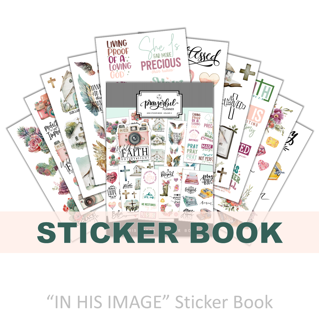Our new "IN HIS IMAGE" Sticker Book is the perfect addition to your planning or Bible journaling time! 10 full sheets of colorful stickers printed on white matte sticker paper. It's the perfect size to tuck into your front planner pocket for safe keeping. 130 individual stickers included! (ONE BOOK INCLUDED)